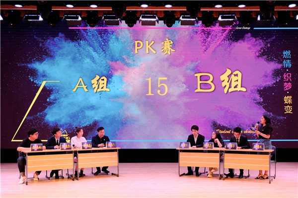 本次大赛以“燃情·织梦·蝶变”为主题,历时两个月,通过学院预选、学校初赛和复赛层层筛选和激烈角逐,15名选手脱颖而出,与来自浪潮、华为、中兴、海尔和京东方五家企业的资深HR和五位学校生涯导师组成了5支战队携手进入决赛。决赛赛程分为“战队赛”、“PK赛”和“精英赛”,5支战队分别围绕“‘一带一路’背景下行业发展趋势分析及校招方案制定”、“员工价值实现中努力与机遇的关系”、“互联网+垃圾分类的创意设计”三个题目,通过团队方案成果展示、辩论、即兴演讲的方式展开了三个多小时的激烈角逐。