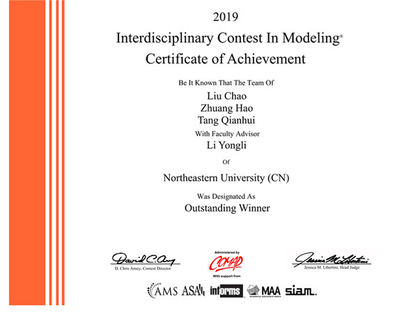 国际大学生数学建模竞赛由美国数学及其应用联合会主办,是唯一的国际性数学建模竞赛,也是世界范围内最具影响力的数学建模竞赛。竞赛始于1985年,赛题内容涉及经济、管理、环境、资源、生态、医学、安全等众多领域。竞赛要求三人(本科生)为一组,在100小时时间内,就指定的问题完成从建立模型、求解、验证到英文论文撰写的全部工作,体现了参赛选手研究问题、解决方案的能力及团队合作精神。