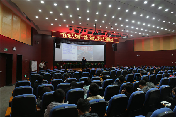 吴永志用生动时新的事例从TRIZ的起源、发展历程以及TRIZ的理论体系讲起,着重讲解了发明创造的等级、与大学生创新实践密切相关的发明40法,并用大量TRIZ应用案例诠释了创新方法的魅力所在。吴永志强调,原始的创新可能无章可循,现代发明有法可依。作为打开创新之门的金钥匙,TRIZ的推广与示范应用对于推动大学生创新创业具有十分重要的现实意义。自主创新,方法先行。吴永志希望作为当代青年表率的大学生们应当勇立双创时代浪潮头,真正做到“心中有理想、眼里有资源、抓得准矛盾、提得出方案”,以方法指引,破解实践难题,践行创新创业,放飞青春梦想。