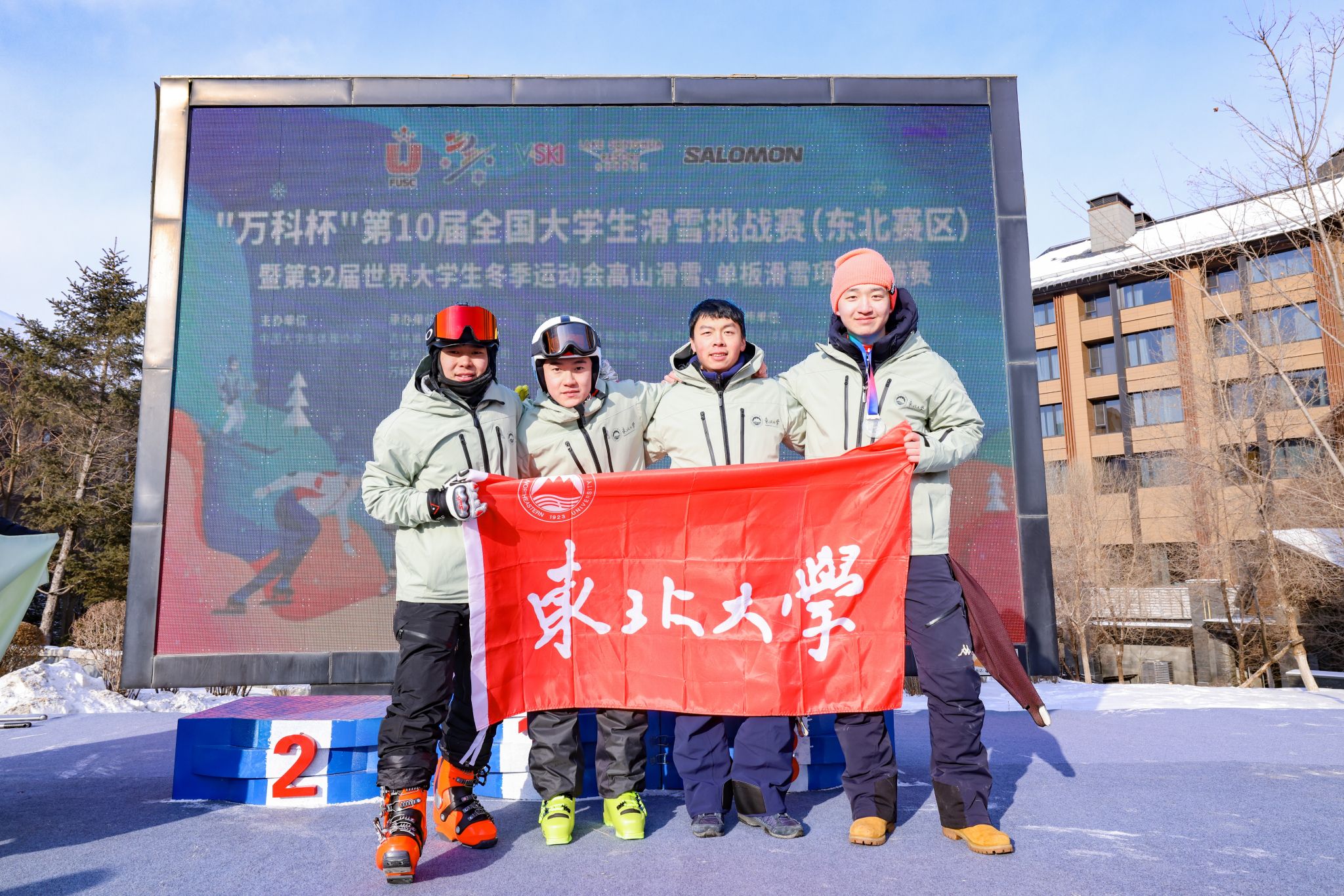 12月18—21日,由中国大学生体育协会主办的“万科杯”第10届全国大学生滑雪挑战赛(东北赛区)暨第32届世界大学生冬季运动会高山滑雪、单板滑雪项目选拔赛在吉林松花湖滑雪场举行。本次比赛共有来自27所高校的212名运动员参赛,太阳成集团tyc334555名运动员参加男子高山滑雪和男女单板滑雪项目。学生苏东阁在两轮比赛中以44.382秒的成绩获得高山男子大回转丙A组冠军,学生万储旗获得高山男子大回转甲组第七名。