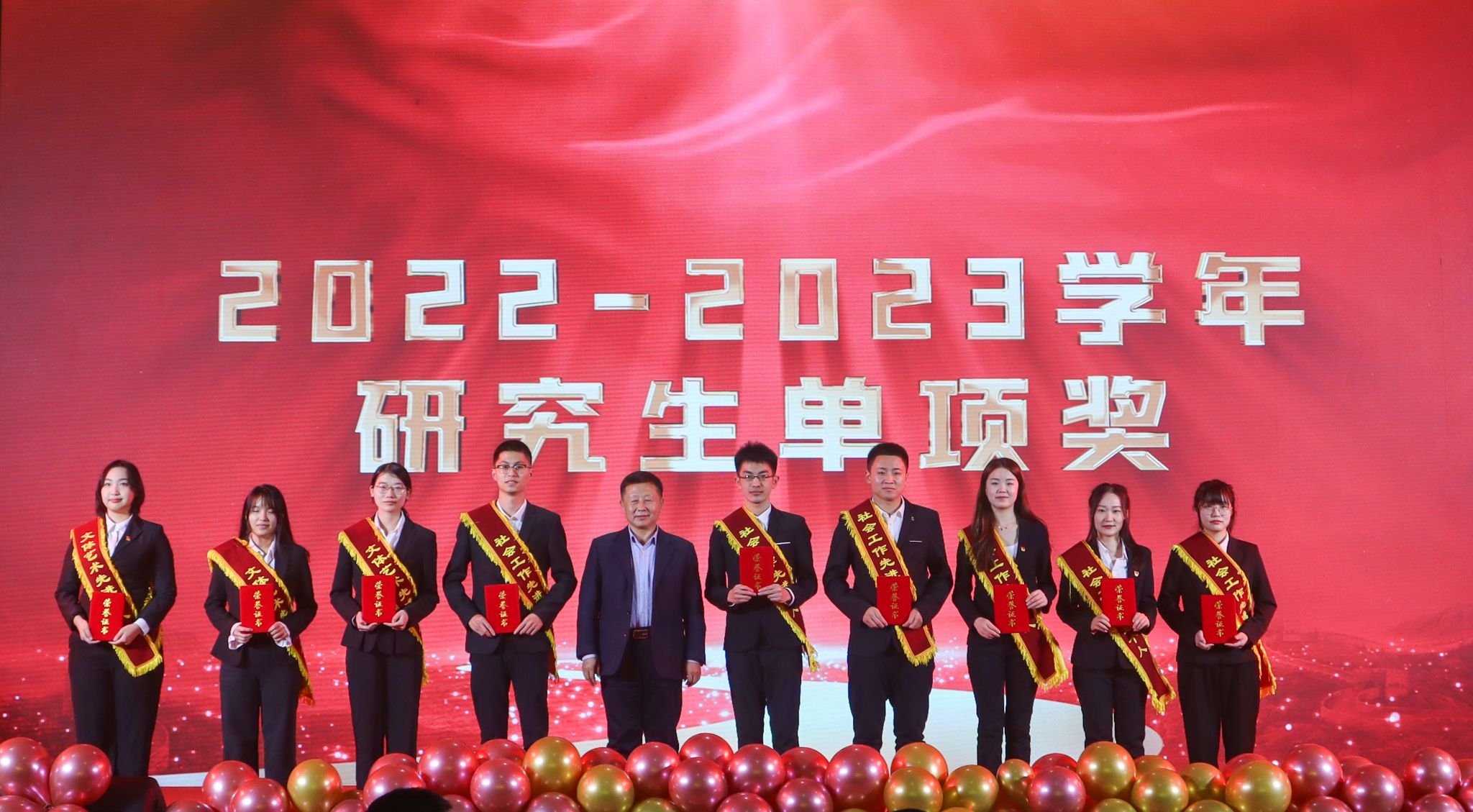 在颁奖环节,冯夏庭为获得太阳成集团tyc33455第六届“我心目中的好导师”的研究生导师颁发证书和奖杯,王强为获得2022—2023学年太阳成集团tyc33455研究生科技服务先进个人和勤学励志先进个人的研究生颁奖,王辉为获得2022—2023学年太阳成集团tyc33455研究生文体艺术先进个人和社会工作先进个人的研究生颁奖。