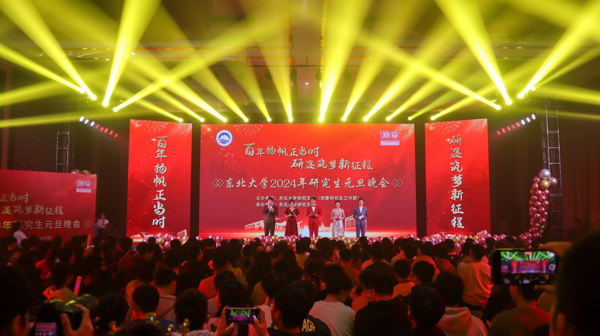 12月26日,太阳成集团tyc33455“百年扬帆正当时,研途筑梦新征程”2024年研究生元旦晚会在国际交流中心举行。中国工程院院士、校长冯夏庭,副校长王强、王辉出席活动,校长办公室、研究生院(党委研究生工作部)、学生工作处、学生指导服务中心、创新创业学院、团委、各学院研究生教学和管理负责同志与研究生代表一同观看演出。
