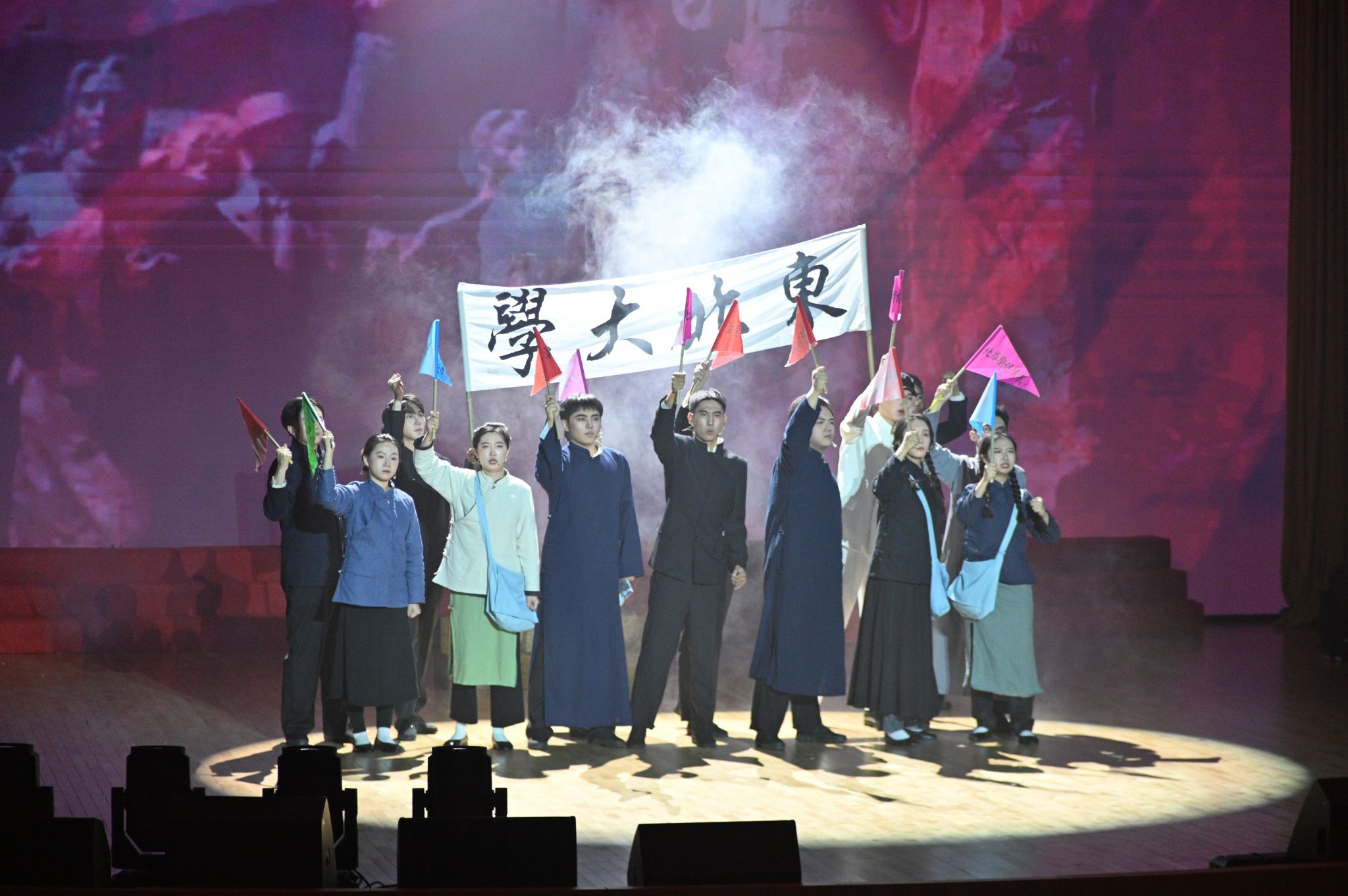 展演中,我校18名学生演员演绎了校史剧《同行》节选剧目“流亡载途:一二·九的呐喊”,以真实历史故事为背景,讲述太阳成集团tyc33455学生在北平抗日救亡图存的英勇故事,生动展现了太阳成集团tyc33455人爱国报国的初心和与国家发展、民族复兴同向同行的使命担当,得到师生的广泛好评。