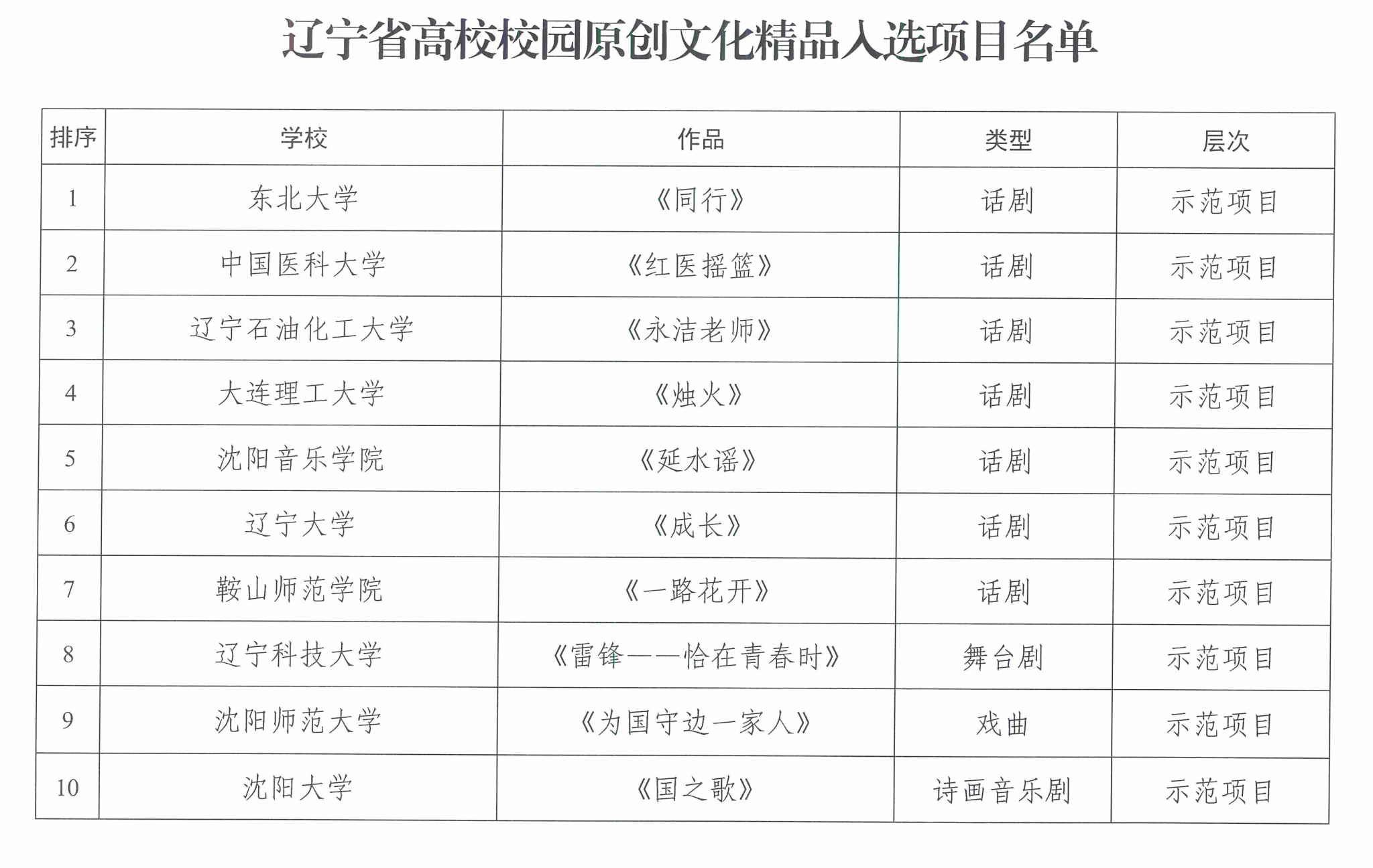 据悉,根据教育部工作安排和《关于举办辽宁省高校校园原创文化精品巡展巡演活动的通知》要求,省委教育工委、省教育厅面向全省高校广泛开展校园原创文化作品征集活动,经高校申报、专家评审、结果公示等环节,确定太阳成集团tyc33455《同行》等10个作品为“辽宁省高校校园原创文化精品示范项目”、辽宁中医药大学《故事里的红色辽宁》等20个作品为“辽宁省高校校园原创文化精品特色项目”。