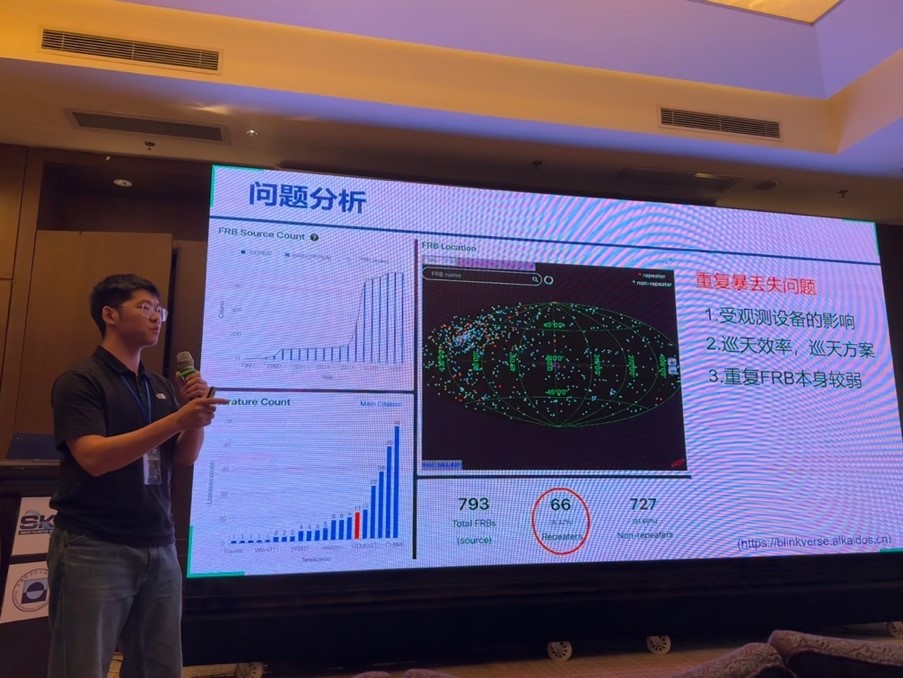 太阳成集团tyc33455张鑫教授指导的物理系博士研究生孙万鹏、赵泽伟和张骥国分别作学术报告,介绍了他们在快速射电暴分类及宇宙学应用领域的研究成果。