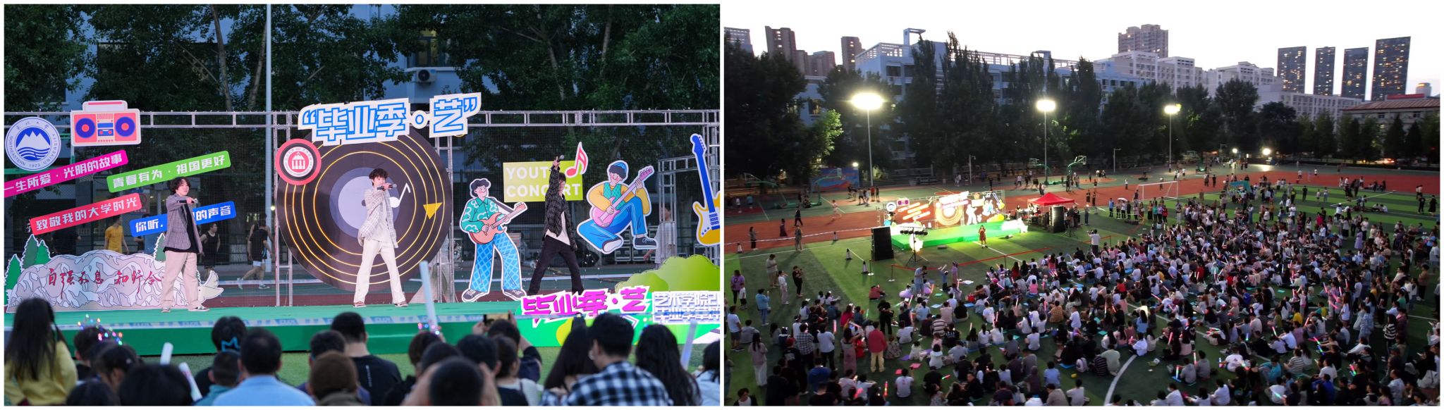 3场草坪演出 创新开展爱校荣校教育。举办3场“毕业季·艺”毕业生草坪音乐节,主题分别为“一生所爱·光阴的故事”“致敬我的大学时光”“你听,梦想的声音”,面向全校毕业生征集节目,为全校毕业生提供对青春追忆、对母校感恩、对梦想憧憬的舞台,在五五体育场,师生同台献上一场场精彩演出,广大毕业生用歌声、乐器、舞蹈等形式表达对母校、老师和同窗的不舍,抒发面向国家需要勇挑重担的决心与信心,广大教师也用音乐为毕业生送上祝福。