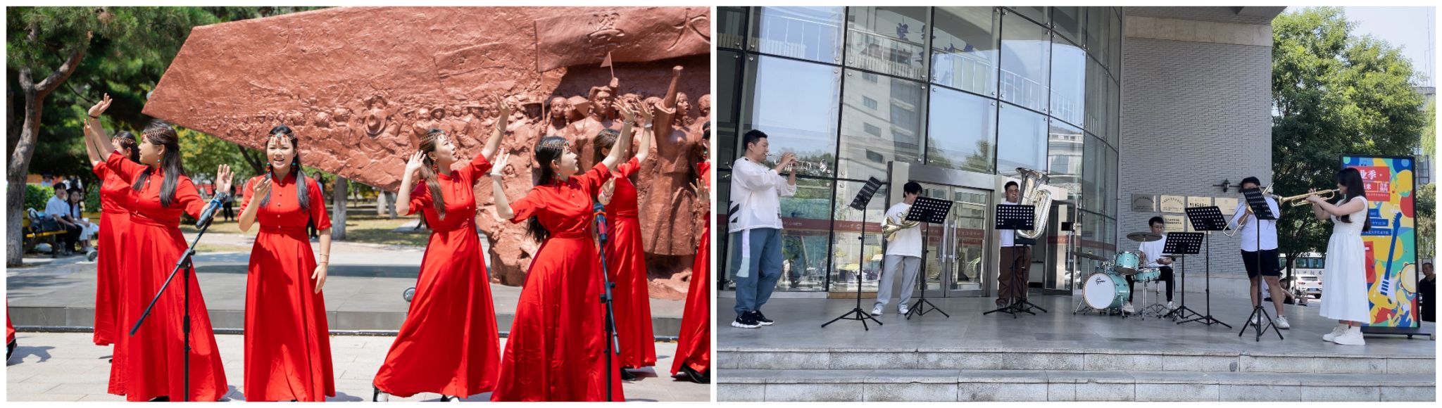 6场音乐快闪 唱响爱党爱国时代强音。学院精心策划,组织开展“音你而来”音乐快闪活动,6场快闪分别精选不同主题曲目,通过管乐重奏、声乐合唱、民族西洋乐器合奏等表演形式,歌颂伟大祖国、展现民族风情、体现青春活力,在学生活动中心、一二九园等地留下师生歌颂党和祖国、唱响青春活力的声音。