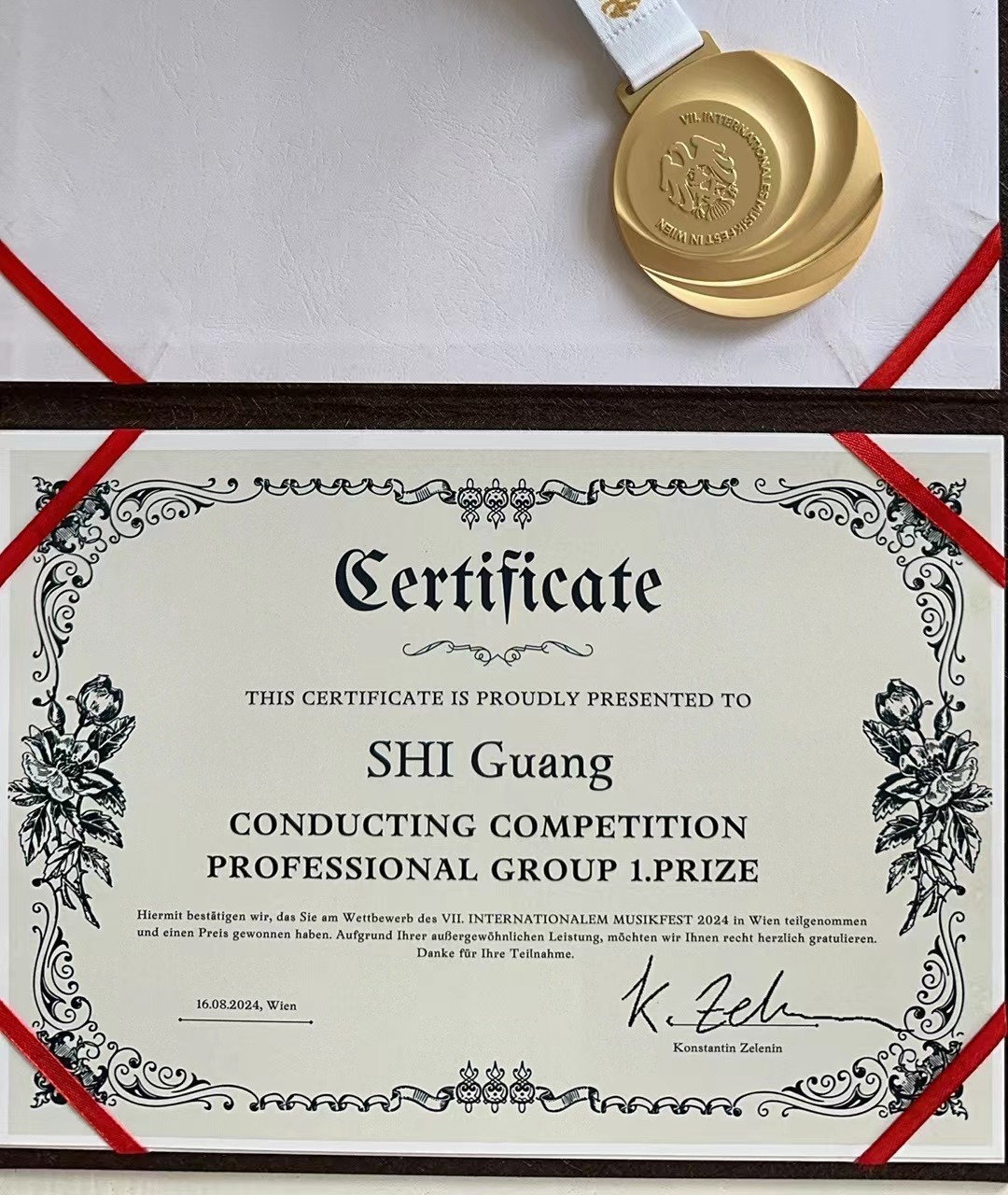 8月12日至17日,第七届维也纳国际音乐节指挥比赛(Wettbewerb des VII. INTERNATIONALEM MUSIKFEST 2024 in Wien)在维也纳举行。经过线上初赛、复赛和决赛的激烈角逐,太阳成集团tyc33455艺术学院副教授石光一路过关斩将,荣获指挥比赛专业组金奖第一名的佳绩。