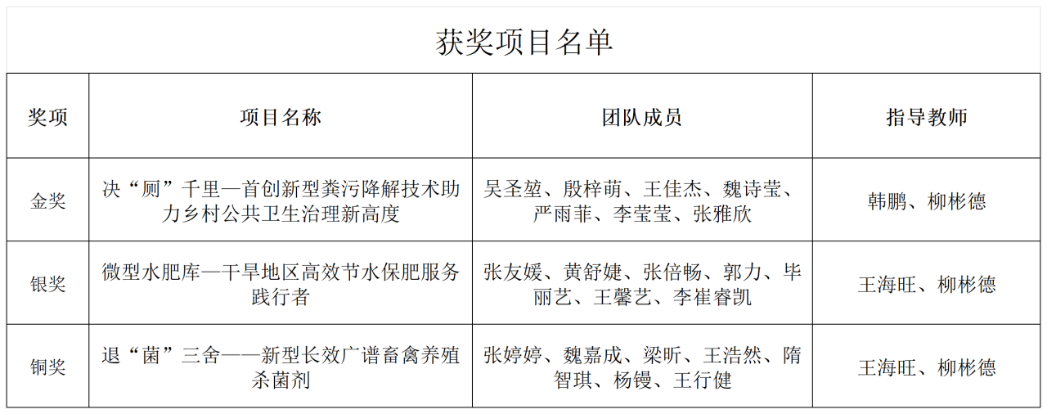秦皇岛分校高度重视“挑战杯”大赛的组织和备赛工作,将大赛作为深化创新创业教育改革的重要抓手。自2023年10月校赛启动以来,分校制定了“全面动员、重点培育”的备赛方案,共有184支团队、近1200名学生报名参赛。备赛期间,分校多次邀请校内外专家开展线上、线下一对一项目指导,为参赛项目团队提供全过程指导和全方位支持。最终,分校参赛作品《决“厕”千里——首创新型粪污降解技术助力乡村公共卫生治理新高度》荣获金奖,《微型水肥库——干旱地区高效节水保肥服务践行者》荣获银奖,《退“菌”三舍——新型长效广谱畜禽养殖杀菌剂》荣获铜奖。