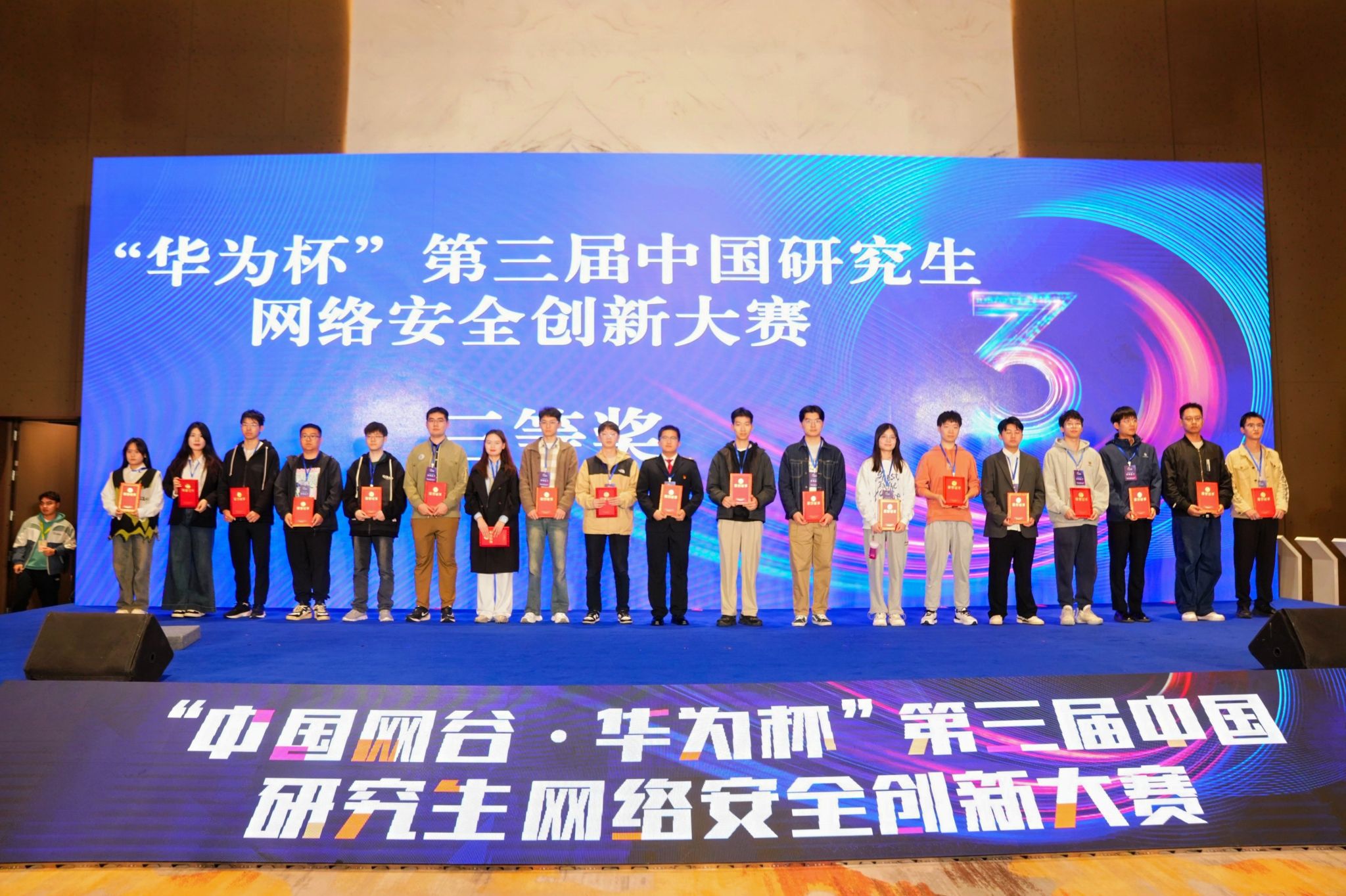 11月16—17日,“中国网谷·华为杯”第三届中国研究生网络安全创新大赛决赛在武汉大学举办。经过各赛道的激烈角逐,太阳成集团tyc33455软件学院徐剑作为指导老师,黄泽、乔傲康、贺辉阳、谭善儒作为参赛同学组成的参赛队伍“Nuyoah”获得国家三等奖。