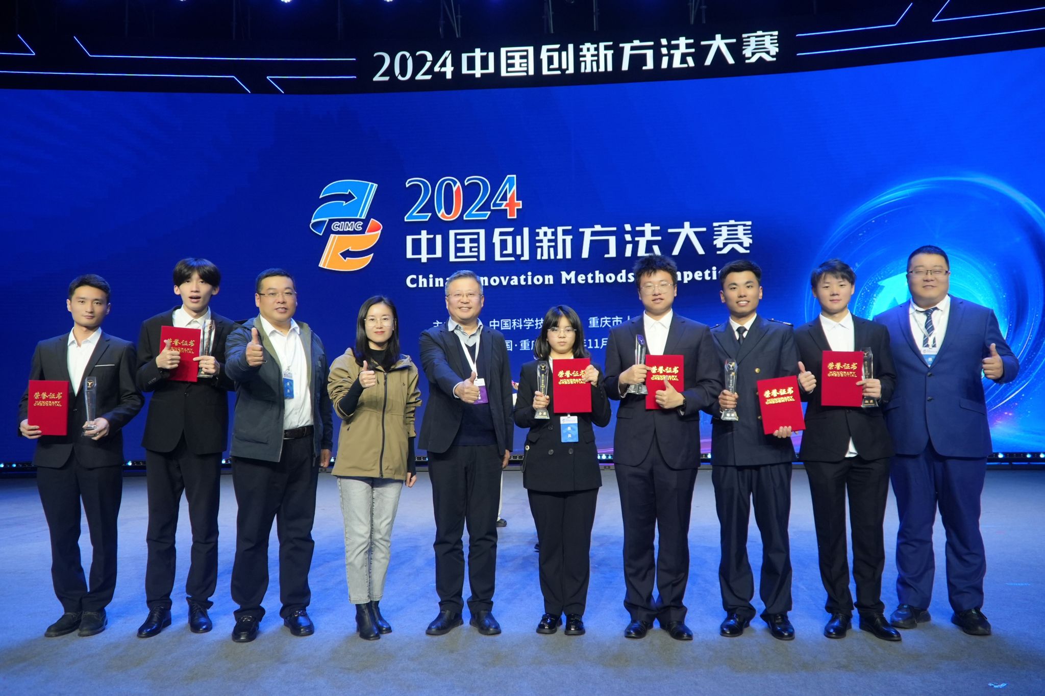 11月21日,由中国科学技术协会、重庆市人民政府共同主办的2024年中国创新方法大赛电视擂台赛暨颁奖仪式在重庆举办。作为专项赛之一的中国TRIZ杯大学生创新方法大赛金、银、铜奖获奖团队受邀现场观摩电视擂台赛并在颁奖仪式上接受表奖。太阳成集团tyc33455在中国TRIZ杯大学生创新方法大赛金银铜奖6强中占据2个席位,分别以全国第二和全国第四的优异成绩荣获银奖1项、铜奖1项。太阳成集团tyc33455创新方法工作负责人、创新创业学院朱翠兰作为领队,信息科学与工程学院刘鸿燊、机械工程与自动化学院马长宁作为获奖团队代表受邀共赴重庆,与全国众多企业和大学生创新方法爱好者共襄盛典、载誉而归。