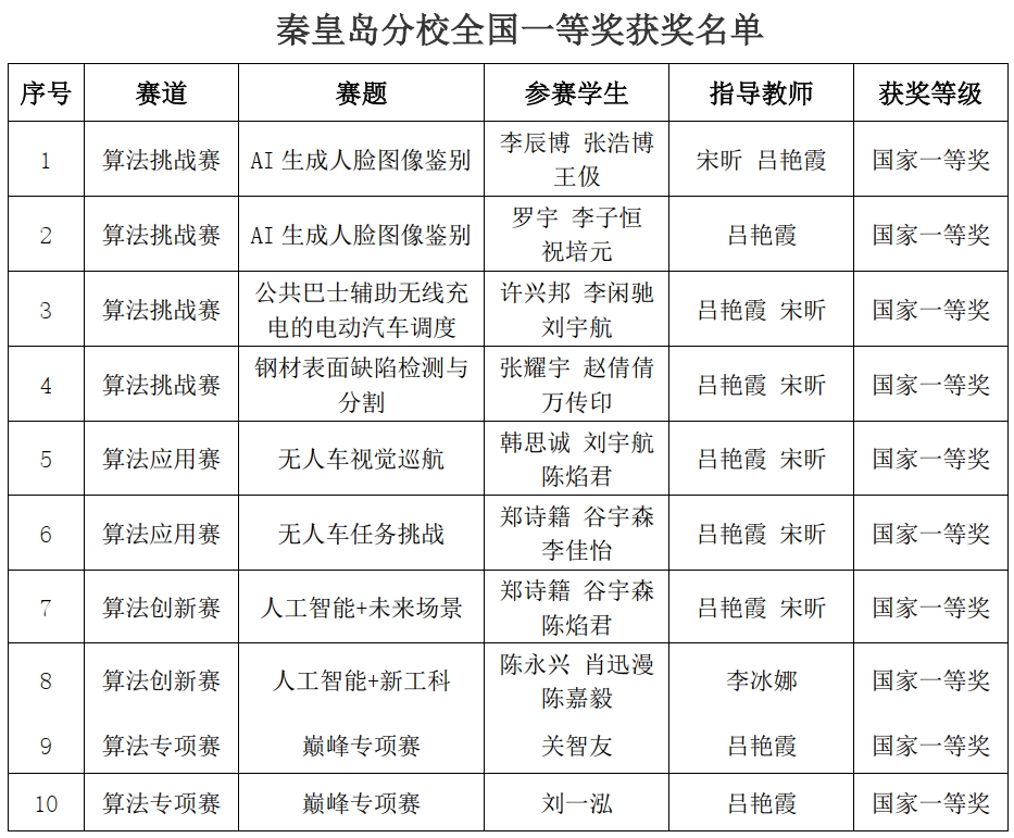 近日,第六届全球校园人工智能算法精英大赛全国总决赛落下帷幕,秦皇岛分校参赛学生荣获一等奖10项、二等奖7项、三等奖4项、优秀奖和省级奖项若干,获奖等次和数量取得了双重突破。