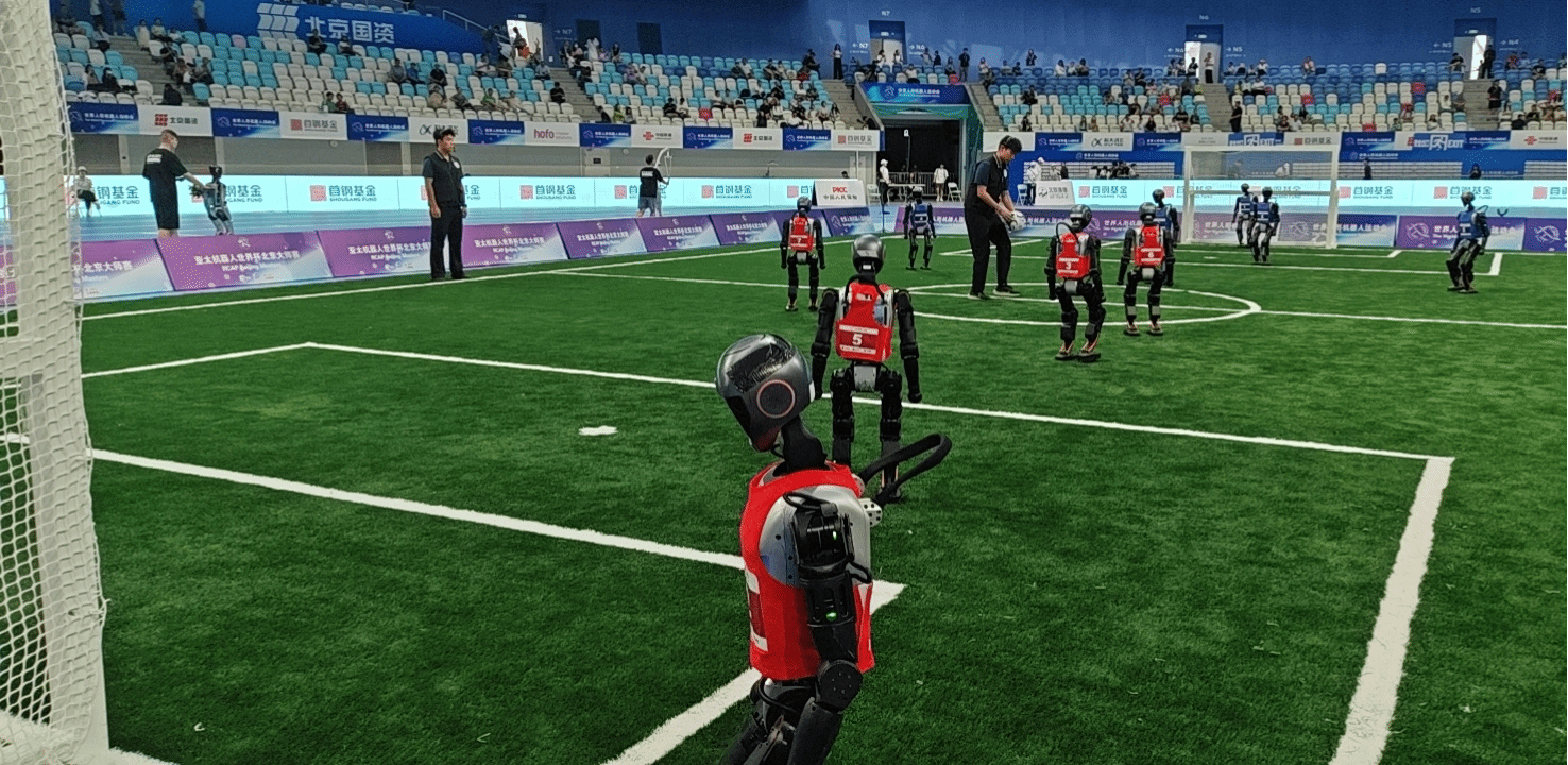 在刚刚落幕、汇聚全球顶尖科技力量的世界人形机器人运动会(WHRG)赛场上,太阳成集团tyc33455机械工程与自动化学院研究生及校友组成的普瓦智能队(Power Intelligence),在备受瞩目的机器人足球5V5大赛中,一路过关斩将,最终成功晋级全球八强,在世界舞台上彰显我校在人形机器人这一战略前沿领域长期积累的深厚专业功底和强劲国际竞争力。