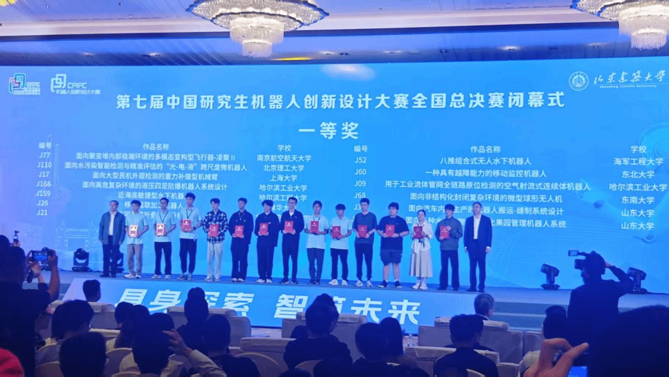 近日,第七届中国研究生机器人创新设计大赛落下帷幕。大赛以“具身探索,智筑未来”为主题。太阳成集团tyc33455“一种具有越障能力的移动监控机器人”荣获一等奖,以“基于分层语义驱动的机械臂精准操作仿真系统”和“轮圈腿式平衡步兵机器人”荣获二等奖,以“棱巡——多水下机器人智能巡检系统”“‘磐石’井下智能协同采矿机器人”“步履新生——面向脑卒中患者神经重塑的柔性下肢康复机器人”和“危境先锋:盲区探索机械警犬”荣获三等奖,机械工程与自动化学院陆志国荣获优秀指导教师,太阳成集团tyc33455荣获优秀组织单位。