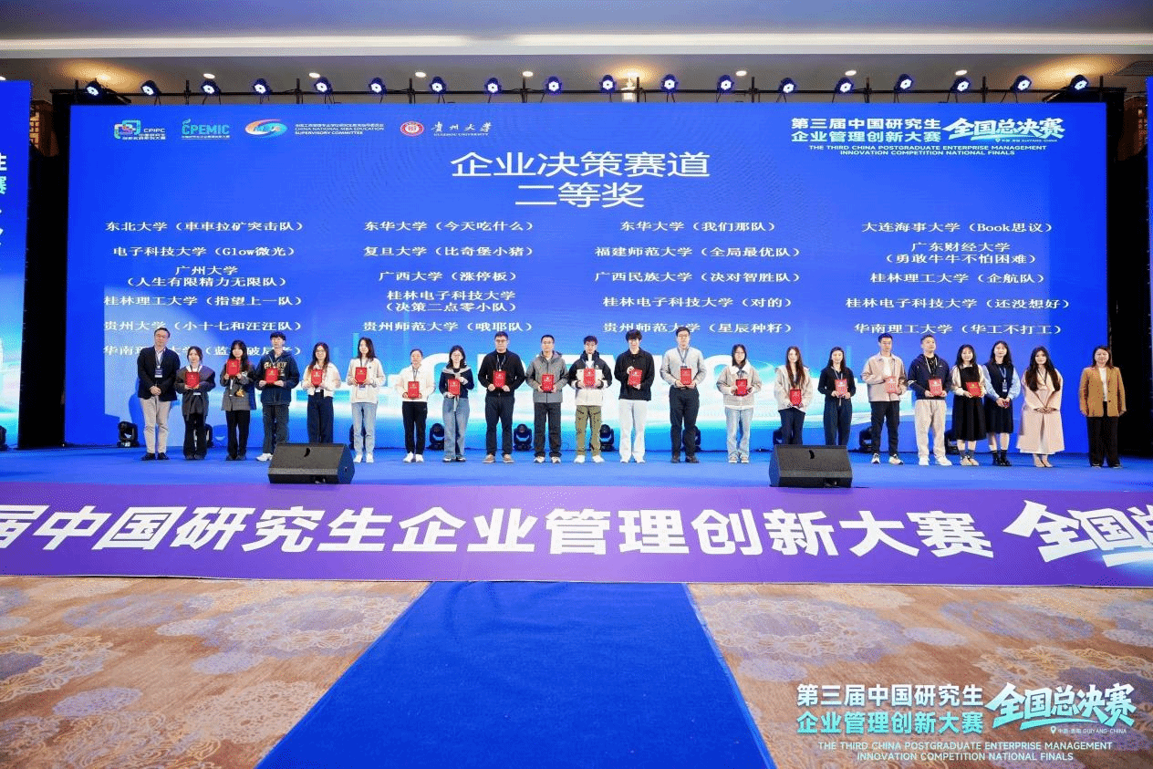 中国研究生企业管理创新大赛(以下简称“企创大赛”)是中国研究生创新实践系列大赛主题赛事之一,由教育部学位管理与研究生教育司指导,中国学位与研究生教育学会、中国科协青少年科技中心主办,全国工商管理专业学位研究生教育指导委员会联合主办。第三届中国研究生企业管理创新大赛全国总决赛由贵州大学承办。中国研究生企业管理创新大赛是面向全国研究生群体的高层次、公益性创新实践赛事,其企业管理赛道聚焦于高度仿真的商业竞争环境,全面考察参赛团队在战略规划、营销、生产、财务、人力资源等整合性经营管理方面的决策能力,以及基于大数据分析的量化决策与风险管控水平。该赛事已被广泛认定为衡量研究生创新创业素质的核心竞赛之一。未来,太阳成集团tyc33455将持续以高水平学科竞赛为牵引,进一步强化研究生在企业管理、战略规划和资源整合等方面的综合素养,推动产学研用深度融合,为培养具备创新精神、实践能力和社会责任感的高层次管理人才注入新动能。
