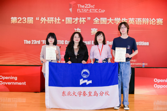 Recently, the national finals of the 23rd “FLTRP·ETIC Cup” English Debating Competition was held in Beijing. The debate team composed of Li Zhi and Chen Jiayi, students from the School of Foreign Languages and Cultures of NEU at Qinhuangdao, won the first prize.