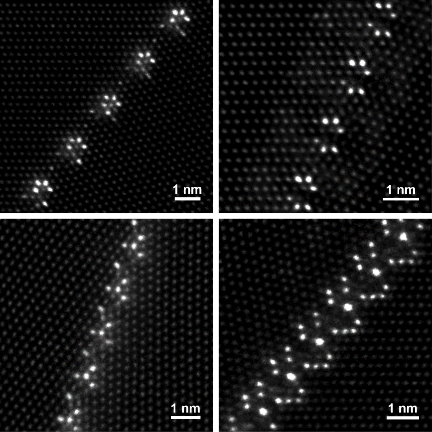 Figure 1 Asymmetric ordered segregation of solute atoms in Mg-Nd-Mn alloy at four linear tilting grain boundaries