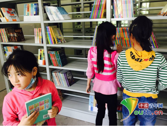 The students of Baoquan Primary School are in a reading class at the loving library.