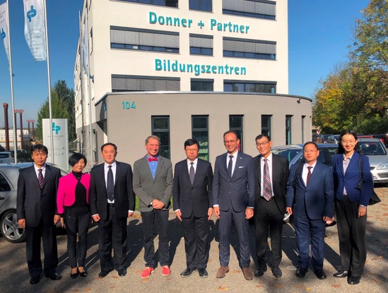 During the visit to the German Dunal Education Center, the delegation met with Mathias Pajunk, Vice President of the Center, and David Fais, Vocational Education Officer of the Waiblingen Chamber of Commerce and Industry, and Zhou Dongyuan, President of the German FUKAN Consulting Company. During the meeting, the Chinese and German sides respectively introduced the school profile, especially the development in the field of continuing education, and held a detailed discussion on the joint training program of “2+1” continuing education and reached a consensus on cooperation.