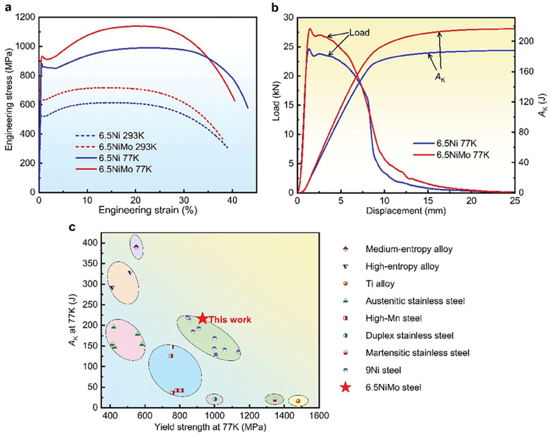 Currently, 6mm to 50mm thick 6.5NiMo steel plates have been fabricated under industrial conditions and successfully applied to the construction of marine LNG tanks and other large-scale cryogenic storage tanks. This research provides a new way for toughening steel materials, which is of great theoretical significance and practical value for promoting the preparation and application of greening high-performance steel materials for clean energy.
