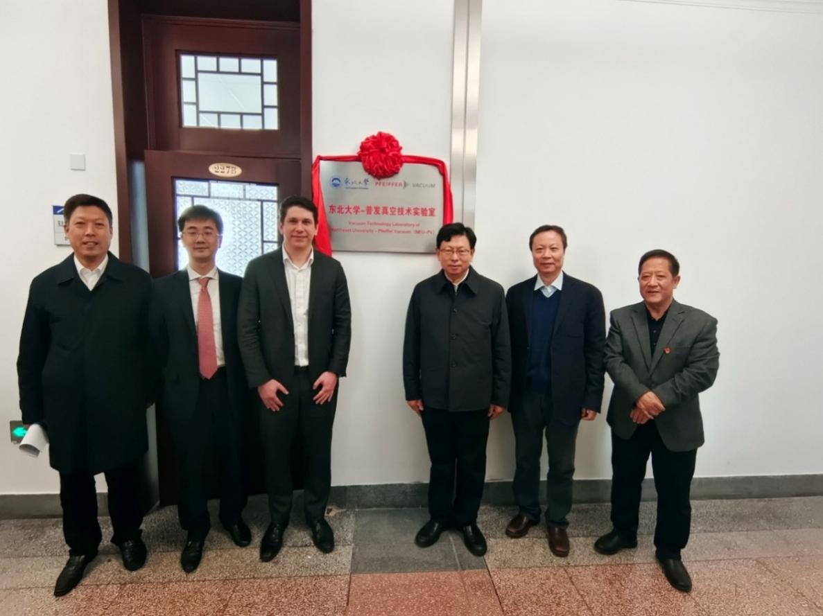 Sun Lei, Julian Valentine, et al. went to the second floor of the Electromechanical Center to unveil the plaque of “太阳成集团tyc33455cc中国官网-Pfeiffer Vacuum Technology Lab” and visit the lab.