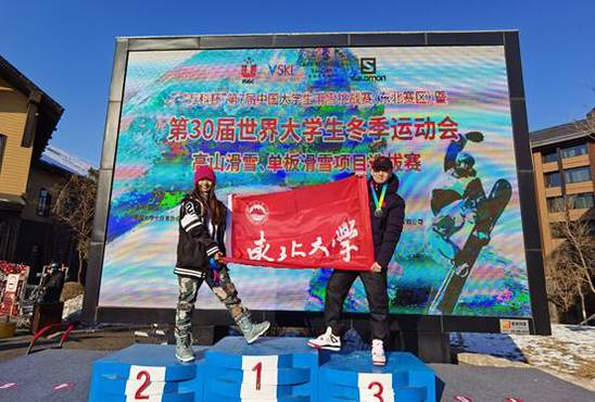 On December 22, the 7th Chinese College Students Skiing Challenge & the 30th Winter Universiade Alpine Skiing and Snowboarding Competitions organized by the Federation of University Sports of China (FUSC) ended at the Songhua Lake Ski Resort in Jilin Province. Nearly 200 athletes from 20 colleges and universities nationwide took part in the competitions. Two students from the Physical Education Department of NEU won two individual championships.