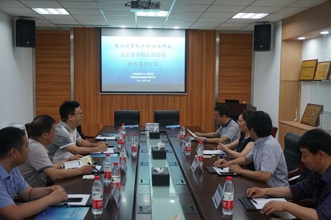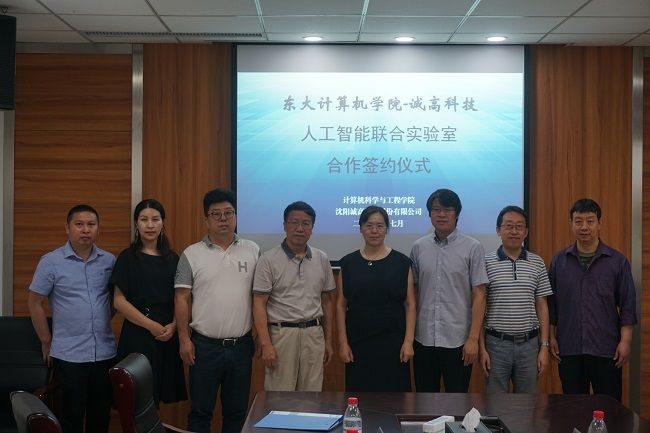 7月5日,计算机科学与工程学院与沈阳诚高科技股份有限公司人工智能联合实验室合作协议及捐赠签约仪式在计算机学院会议室举行。沈阳诚高科技股份有限公司董事长兼总经理陈晓冰先生,产业联盟理事长、诚高科技首席顾问杨志国先生,计算机学院党委书记王克君、副院长杨金柱等参加仪式。