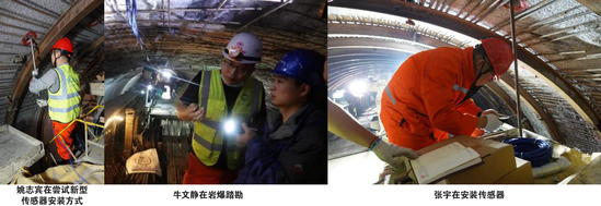 我国新疆某大型深部工程,某区段岩爆灾害频发,工程建设安全风险大、进度缓慢。岩爆造成大量岩石崩落,并产生巨大声响和气浪冲击,导致开挖面破坏,设备损坏和人员受伤。在冯夏庭院士的指导下,2020年9月30日,岩爆课题组姚志宾老师带领张伟、张宇,牛文静、王厚宇、王俊泽、熊永润、付廉杰、王羽亮等研究生,不顾即将到来的中秋团圆佳节,进驻新疆某深埋工程,在最短时间完成了项目方案设计、设备安装与调试,及时开展了岩爆监测预警工作,为该工程安装上了“听诊器”。