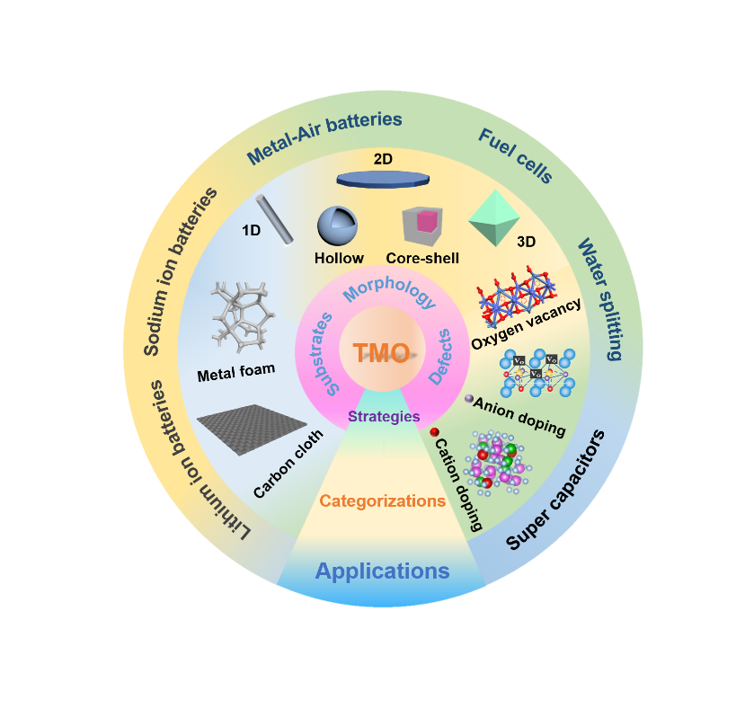 过渡金属氧化物在能量转换与存储中的应用及改性方法总结示意图