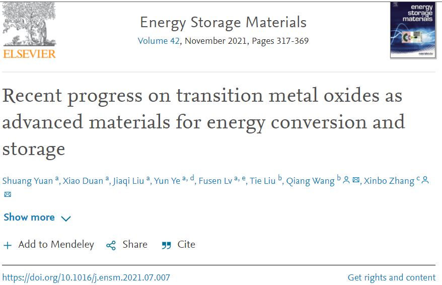 近日,我校能量转换材料与技术研究团队在能源材料类国际高水平期刊发表综述论文。该论文系统地总结了过渡金属氧化物(TMOs)在锂离子电池、电催化制氢、超级电容器等前沿能量转换和存储器件中的研究现状、存在的科学问题及解决方案。从改性策略的角度,围绕TMOs在能量转换与储存领域的应用,总结了材料结构设计、缺陷工程、材料复合以及电极一体化等改性方法,为开发高效的电化学能量转换材料与器件的研究提供了参考。相关内容以“Recent progress on transition metal oxides as advanced materials for energy conversion and storage”为题发表在《Energy Storage Materials》期刊上。《Energy Storage Materials》创刊于2015年,由中国科学院成会明院士任期刊总编辑,是新能源与材料科学领域最负盛名的期刊之一,该期刊主要报道储能材料和技术有关的重大科学发现及可持续能源和发展的策略和政策。