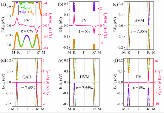 图3应变调控ScBr2单层的能带结构、拓扑相变和Berry曲率