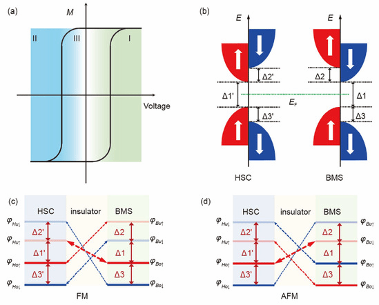 研究组在前期研究成果的基础上,提出了一种利用能带调控实现非易失性电控磁化翻转的新方法。研究从能带理论出发,设计了具有半半导体(half semiconductor)/绝缘体/双极磁性半导体(bipolar magnetic semiconductor)材料堆叠结构的原理器件。利用紧束缚理论的四能带模型,证明了外电场可以调控两个半导体材料的层间磁耦合方式,实现磁化翻转;并利用材料的磁各向异性能垒保持磁化状态,确保了断电时信息的非易失性。最后,研究以CrBr3和2H-VSe2为磁性半导体,h-BN为绝缘体层构建了的自旋器件,进一步论证了能带调控实现非易失性电控磁化翻转的可行性。成果以“Electrically manipulating magnetization reversal via energy band engineering”为题发表在《中国科学:物理学力学天文学》英文版(SCIENCE CHINA Physics, Mechanics & Astronomy) [66, 257511(2023)]期刊。论文第一作者为太阳成集团tyc33455博士生仝军伟,导师张宪民教授为通讯作者,太阳成集团tyc33455为唯一通讯单位。