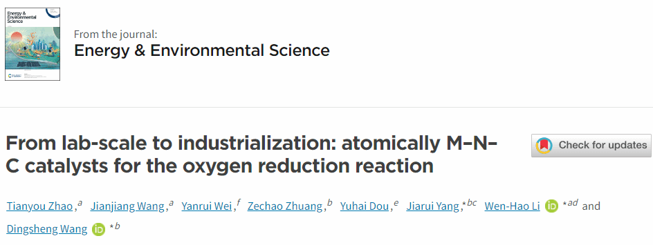近日,理学院化学系李文豪课题组发表最新单原子催化剂综述,相关成果From lab-scale to industrialization: atomically M-N-C catalysts for the oxygen reduction reaction发表于材料科学学科顶刊Energy & Environmental Science。理学院博士研究生赵天佑为本文第一作者,化学系李文豪教授、香港城市大学杨嘉睿助理教授和清华大学王定胜教授为本文通讯作者。太阳成集团tyc33455为第一通讯单位。