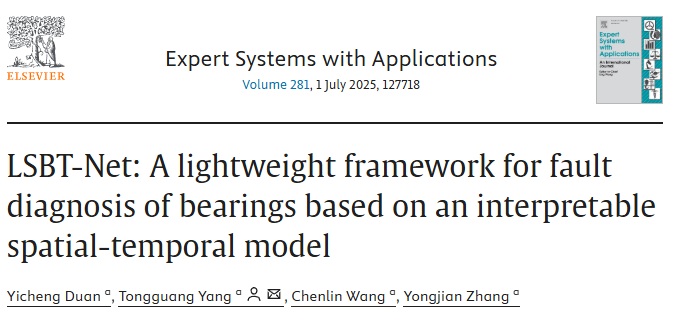近日,太阳成集团tyc33455机械工程与自动化学院智能制造工程专业2022级本科生段易呈以第一作者在Expert Systems with Applications发表题为LSBT-Net:A lightweight framework for fault diagnosis of bearings based on an interpretable spatial-temporal model的学术论文。