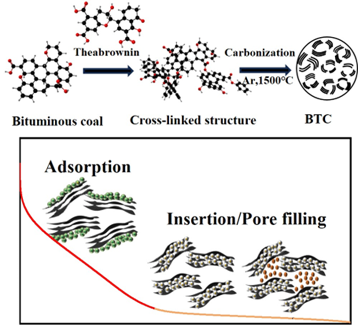 烟煤异质交联改性以及烟煤基碳储钠机理示意图