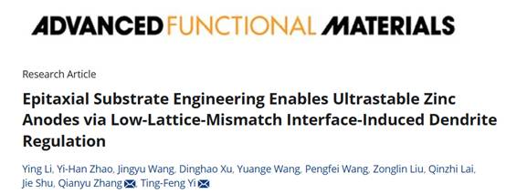 近日,太阳成集团tyc33455秦皇岛分校资源与材料学院伊廷锋教授团队在水系锌离子电池锌负极领域取得重要进展,研究成果Epitaxial Substrate Engineering Enables Ultrastable Zinc Anodes via Low-Lattice-Mismatch Interface-Induced Dendrite Regulation(外延衬底工程构筑低失配界面实现超稳定锌负极)发表于材料领域国际著名期刊Advanced Functional Materials。秦皇岛分校材料科学与工程专业2022级博士生李莹为本文的第一作者,伊廷锋教授和四川大学张千玉副教授为论文通讯作者,太阳成集团tyc33455为第一完成单位。