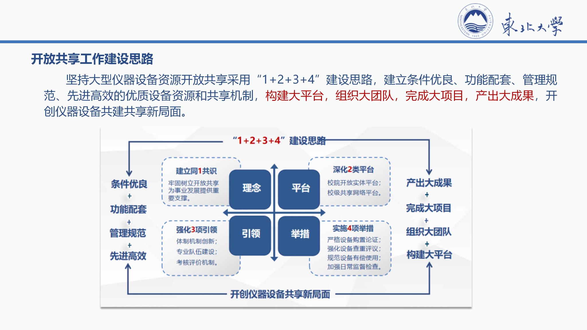 重大科研基础设施和大型科研仪器是突破科学前沿、促进科技创新、推进高水平科技自立自强的重要基石和保障。学校高度重视重大设施和大型科研仪器开放共享工作,近年来以切实提高仪器使用效益为目标,坚持“四个面向”的战略导向,将开放共享纳入年度重点工作和校内巡察审计关键指标范畴。学校秉持“1+2+3+4”建设思路,构建优质仪器资源共享机制:一是坚持制度引领,构建涵盖仪器论证、共享体制、绩效考核以及检查监管等环节的全流程制度体系;二是加强平台建设,投入资金以拓展校级平台的服务范围,提升科研支撑能力,并扩大院级平台规模;三是完善网络平台功能,达成校内多业务系统的智慧互联,以及与国家网络平台的融合对接;四是推行科学规范管理,全面施行仪器有偿使用制度,制定全成本核算收费标准与审定机制,设立服务专用账户并执行收支两条线管理;五是强化激励措施,建立共享收入的校、院、机组三级分配机制,校级收入设立公共维修基金,学院和机组收入用于仪器维修维护、功能开发以及实验技术人员绩效奖励等方面。
