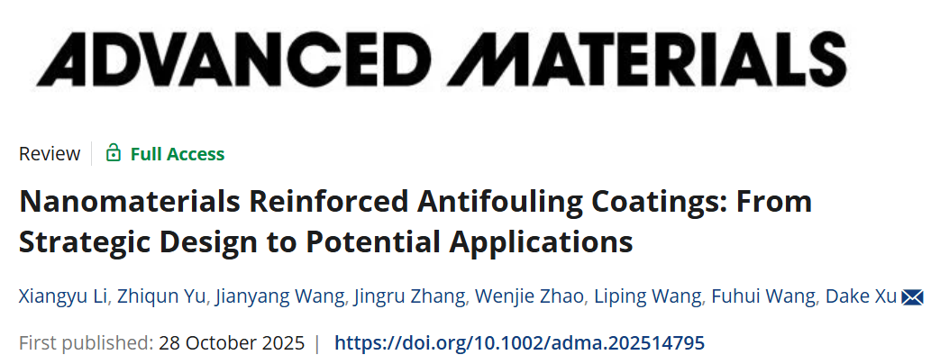 近日,材料学院王福会教授团队徐大可教授课题组系统总结了纳米防污涂层领域的研究进展,相关成果“Nanomaterials Reinforced Antifouling Coatings: From Strategic Design to Potential Applications”发表于材料学科国际顶级期刊Advanced Materials。材料学院李祥宇特聘研究员、于智群特聘研究员、博士生王健阳为共同第一作者,徐大可教授为独立通讯作者,太阳成集团tyc33455为第一完成单位和唯一通讯单位。
