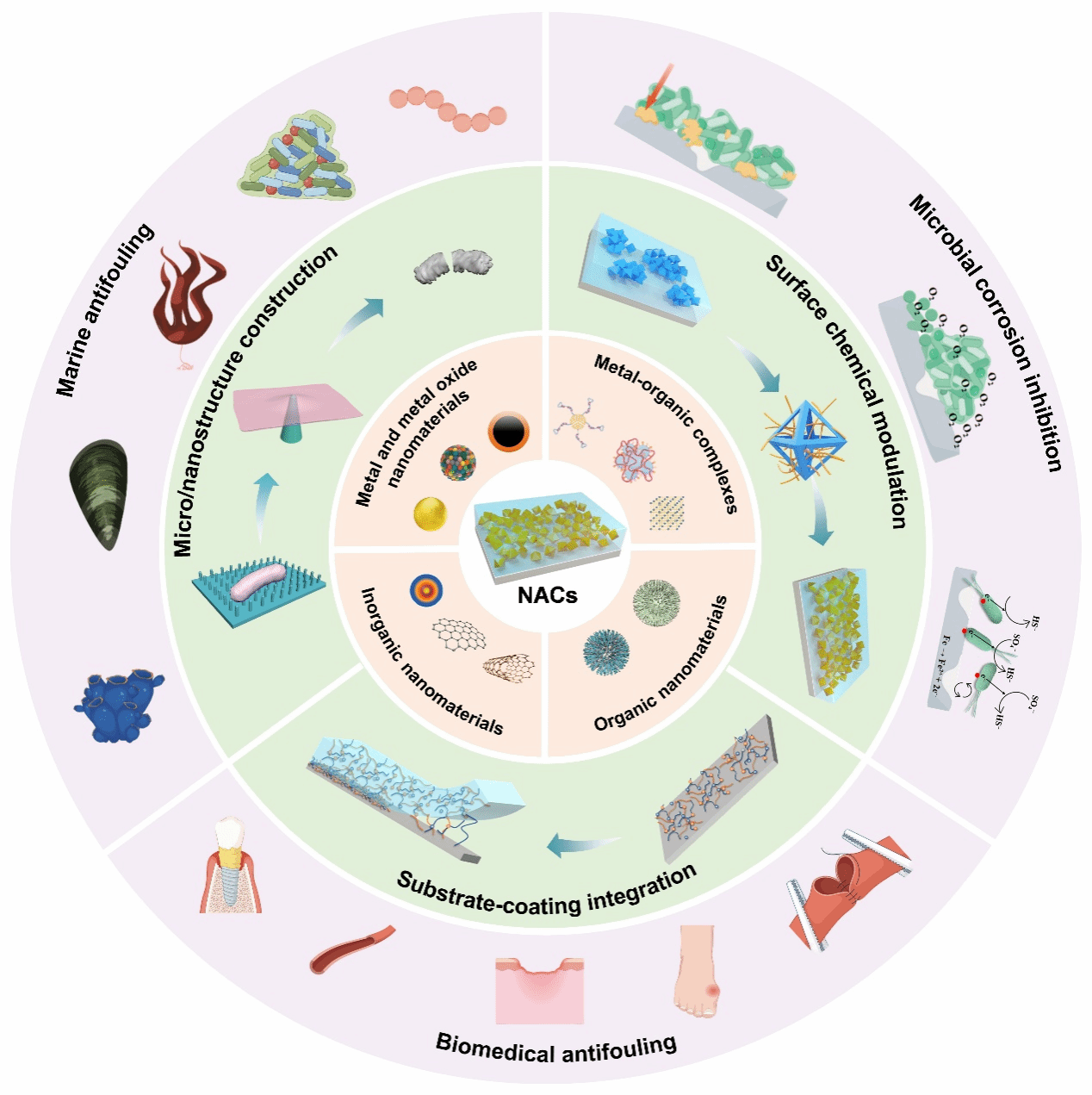 微生物形成的顽固生物被膜对生态环境、工业设备和公共健康构成持续威胁。近年来,抗菌纳米材料的研究取得显著进展,该类材料能够将细菌活性和数量降低数个数量级,已经成为高效广谱的抗菌策略。它们不仅能够有效抑制细菌增殖与生物膜形成,还能显著延缓耐药性发展进程。将纳米材料嵌入涂层或构建本征纳米结构是一种高效、经济且环保的防污策略,能显著提升材料的实用性。通过合理的界面工程设计,这类纳米复合涂层可在多种基材上形成兼具机械强度与耐久性的防护表面,从而拓展其在生物医学、环境保护及能源等领域的应用前景。