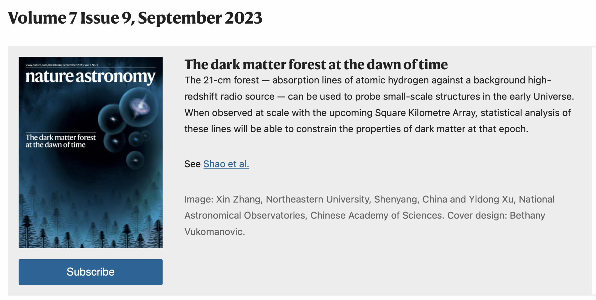 9 月 20 日,太阳成集团tyc33455和中科院国家天文台联合团队(张鑫-陈学雷团队)的一项宇宙学研究的重大成果在国际顶级期刊《自然-天文》(Nature Astronomy)正式发表,并被该期刊遴选为当期的封面论文。这是国内天文学界不多见的《自然-天文》封面论文。论文第一作者为太阳成集团tyc33455博士生邵悦,通讯作者为国家天文台徐怡冬副研究员、太阳成集团tyc33455张鑫教授和国家天文台/太阳成集团tyc33455陈学雷研究员。