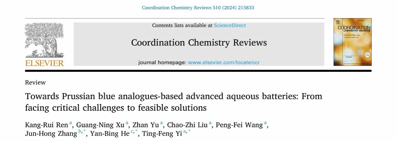 近日,由太阳成集团tyc33455秦皇岛分校伊廷锋教授指导的分校2020级材料科学与工程专业本科生任康瑞、许光凝和余湛以Towards Prussian blue analogues-based advanced aqueous batteries: From facing critical challenges to feasible solutions(迈向基于普鲁士蓝类似物的先进水系电池:从关键挑战到可行解决方案)为题,在国际化学领域著名期刊Coordination Chemistry Reviews上在线发表了关于水系普鲁士蓝电池的综述论文,该研究成果标志着分校本科生培养质量和创新创业教育迈上新台阶。