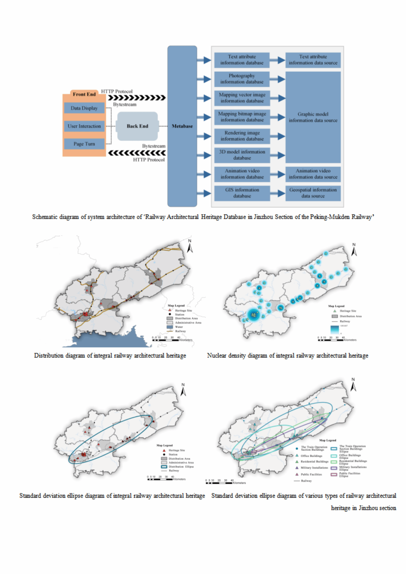 研究以区域铁路文化历史演变的重要载体——京奉铁路锦州段为研究对象,在解读研究背景、界定研究范畴和调研的基础上,整理提出了65项铁路建筑遗产作为研究案例,据此形成“京奉铁路锦州段铁路建筑遗产名录”。经过信息数据调研采集、数据处理和信息可视化转换,基于SQL server平台构建完成由9个子数据库构成、B/S架构模式下的“京奉铁路锦州段铁路建筑遗产数据库”。研究应用“地理空间信息数据库”ArcGIS空间分析工具,解析京奉铁路锦州段铁路建筑遗产的空间分布形态、空间集聚度、空间均衡度等时空分布特征;应用“图模信息数据库”、“文本属性信息数据库”图像和文本信息数据剖析铁路建筑遗产的本体特征;由此得出以下研究结论:建筑遗产整体空间分布具有“凝聚”特性,而5个中类的遗产表现为明显且各异的空间分布方向性;建筑遗产整体表现为以单个高聚集点为核心的高凝聚型空间集聚格局,其中的站房类建筑遗产为带状低聚集区的点—线—点空间集聚格局;建筑遗产整体以及3个大类遗产在研究范域内分布差距较大,均衡度较低;建筑本体特征解析结果显示,数据库中的图像信息,可作为建筑本体特征整体解析、建筑形式与风格特征研判、建筑功能空间形态类型特征分析的研究基础。据此,研究提出了基于数据库构建与应用的建筑遗产保护与活化的示范性研究逻辑、模式和方法。