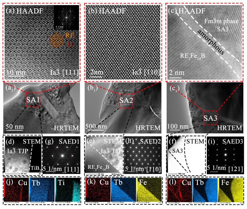 该研究对富稀土相如何影响烧结钕铁硼永磁材料性能给出进一步解释,揭示了不同三角晶界相在影响磁体矫顽力的深层原因,持续推动高性能稀土永磁材料的研究和发展。