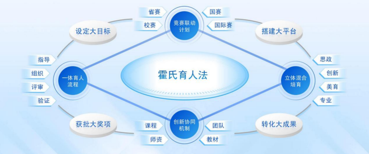 霍楷将教学与校园美育深度融合,组织学校美育第一课堂教学,70余门美育课程中有3门获国家一流课程。在此基础上,建立第二课堂“校赛—省赛—国赛—国际赛”艺术展赛联动计划,构建起“第一课堂(课程)+第二课堂(展演竞赛)”的立体化美育体系。将科学与艺术、文化与创意融合,推动《设计创新与竞赛》纳入专业培养方案,总结“创、量、健、技、美”的作品创作质量标准和评审标准,独创“课程-竞赛-成果转化”的“赛教融合”闭环育人模式,获中国大学生计算机设计大赛教学成果奖(全国唯一)、中国大学生计算机设计大赛教学名师奖(全国5人),是中国大学生计算机大赛的 “双冠王”。同时,指导学生获国内外设计奖项超4000余项,其中中国大学生计算机设计大赛一等奖52项,位列全国高校之首。在其推动下,非艺术类学生通过“普通组”赛道崭露头角,超过20名学生凭借比赛一等奖获得保研资格。