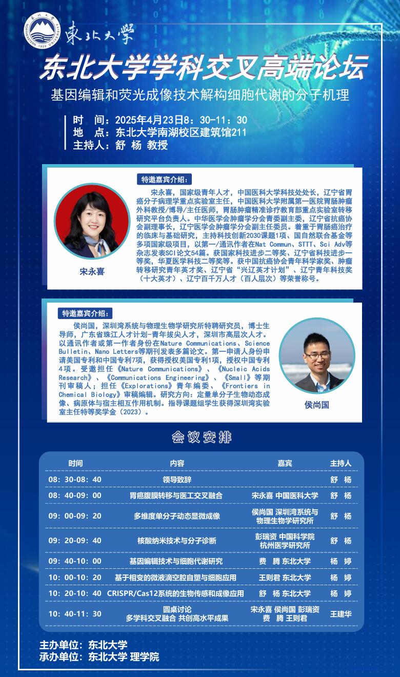 主 题:基因编辑和荧光成像技术解构细胞代谢的分子机理