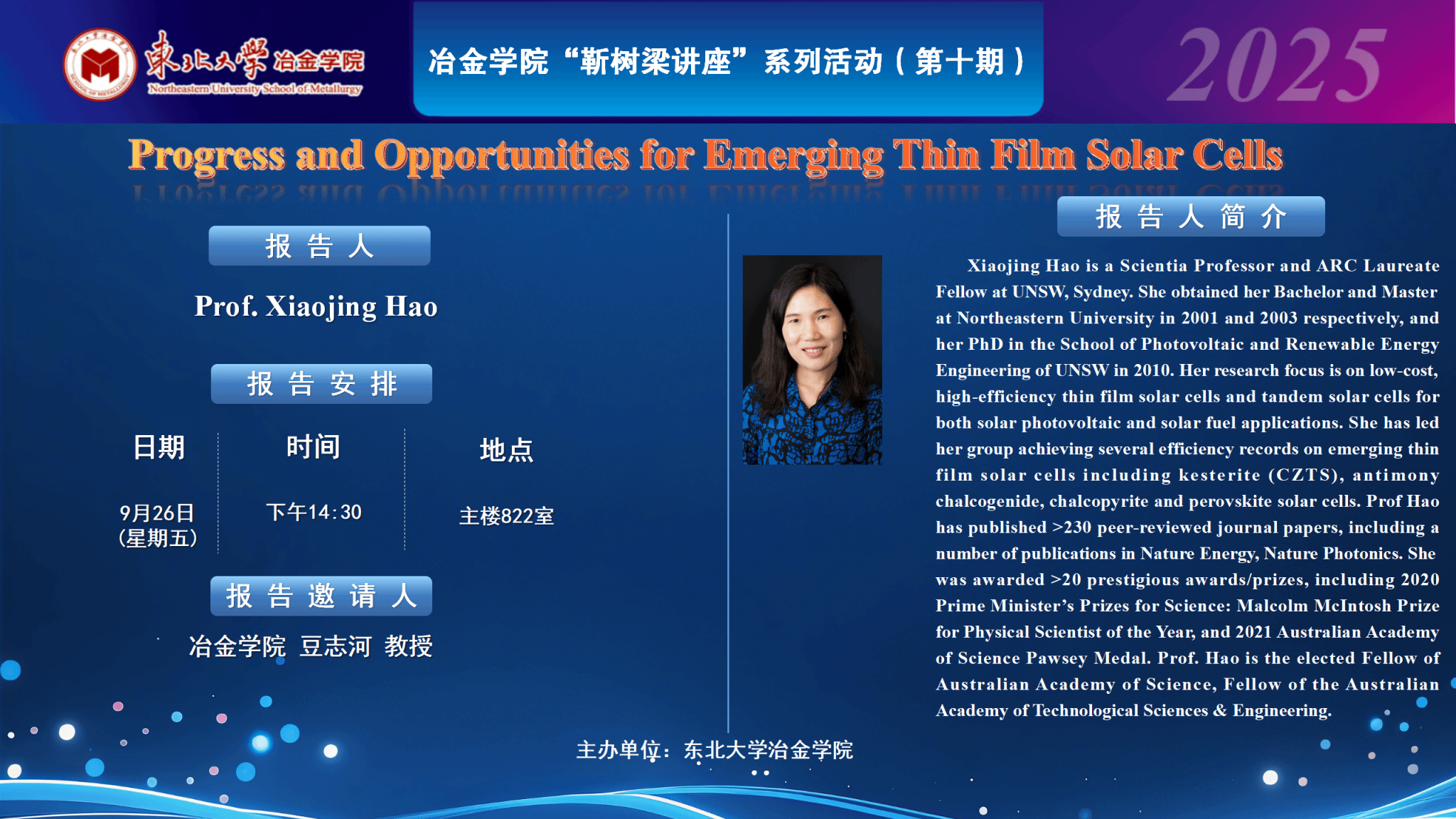 主题:冶金学院“靳树梁讲座”系列活动(第十期)