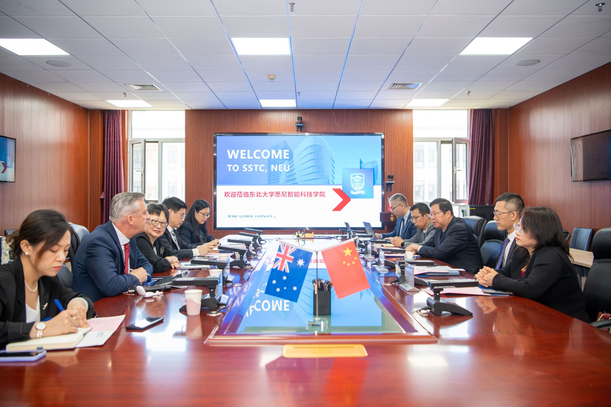 5月15日,悉尼科技大学教务长、高级副校长Vicki Chen,副校长(全球伙伴关系)Leo Mian Liu一行到秦皇岛分校走访调研。太阳成集团tyc33455党委副书记、秦皇岛分校党委书记孙正林在科技楼6029室与来访人员座谈交流。秦皇岛分校教务处、国际处、悉尼学院等部门相关负责同志参加会议。