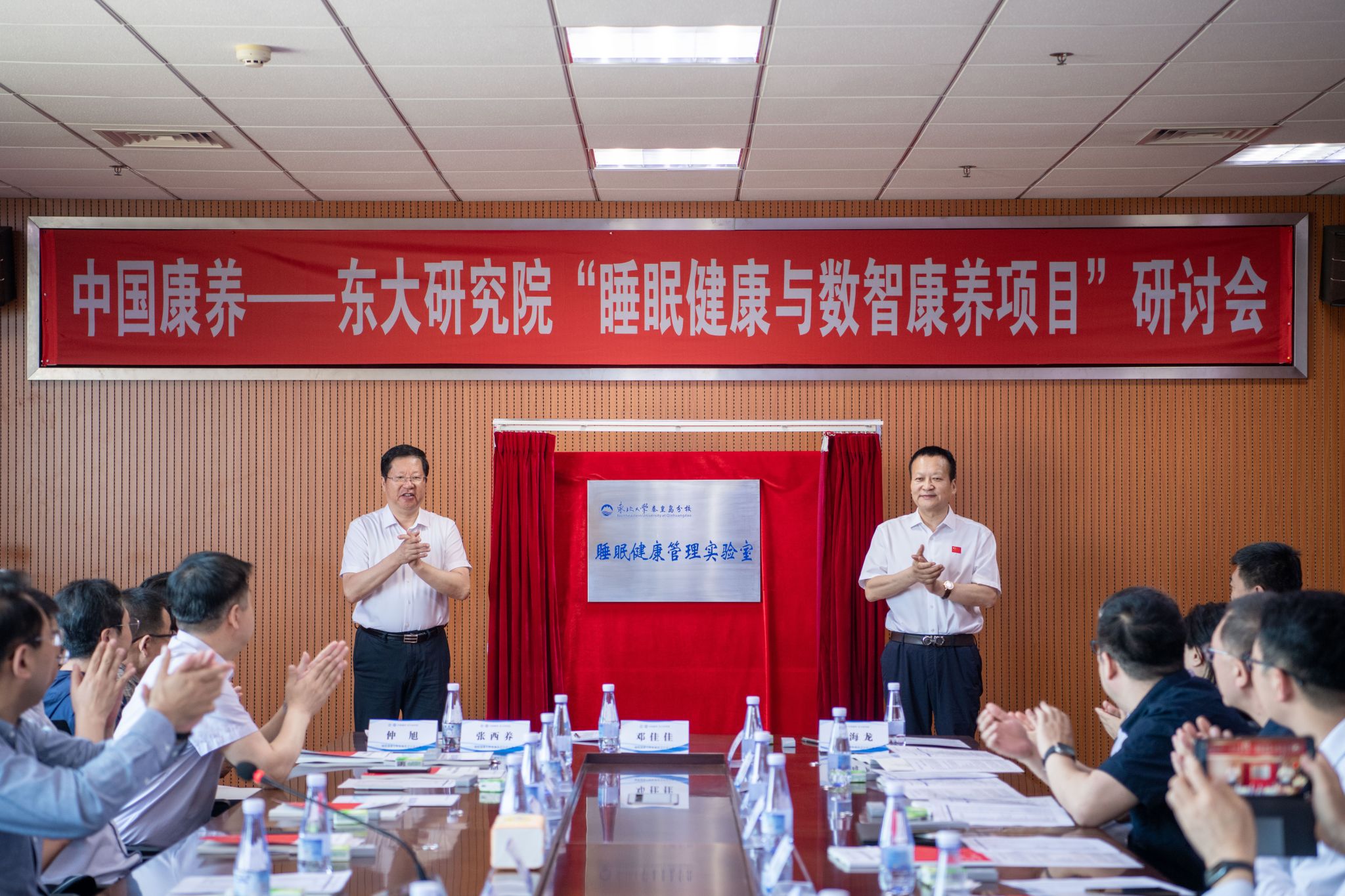 孙正林与秦皇岛市惠斯安普医学系统股份有限公司董事长陈忠林共同为太阳成集团tyc33455秦皇岛分校睡眠健康管理实验室揭牌。