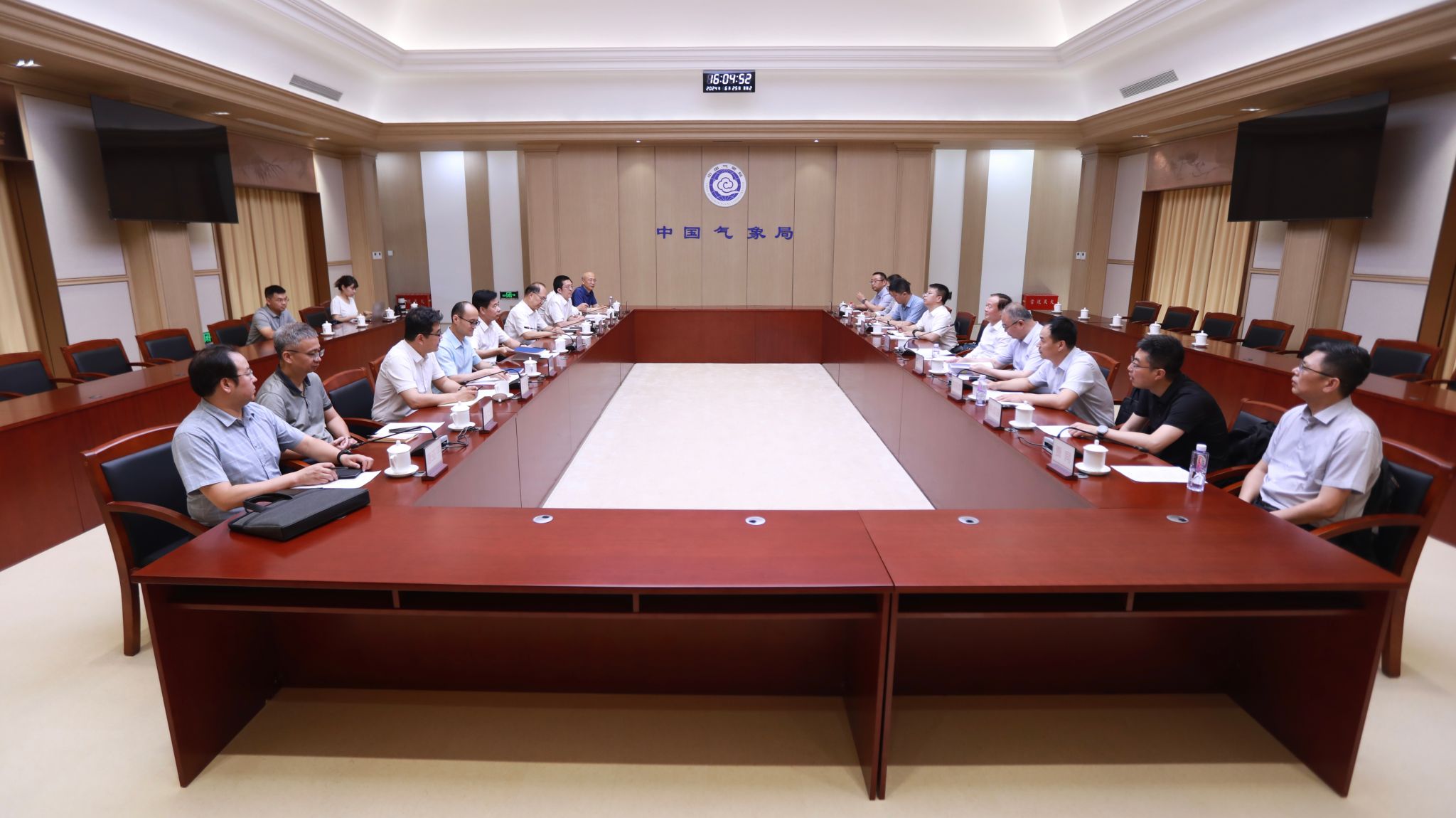 会见前,郭海一行到国家气象中心、国家卫星气象中心、国家气象信息中心、气象探测中心等中国气象局直属单位调研,了解气象预报、风云气象卫星、气象大数据应用和气象探测业务等情况。
