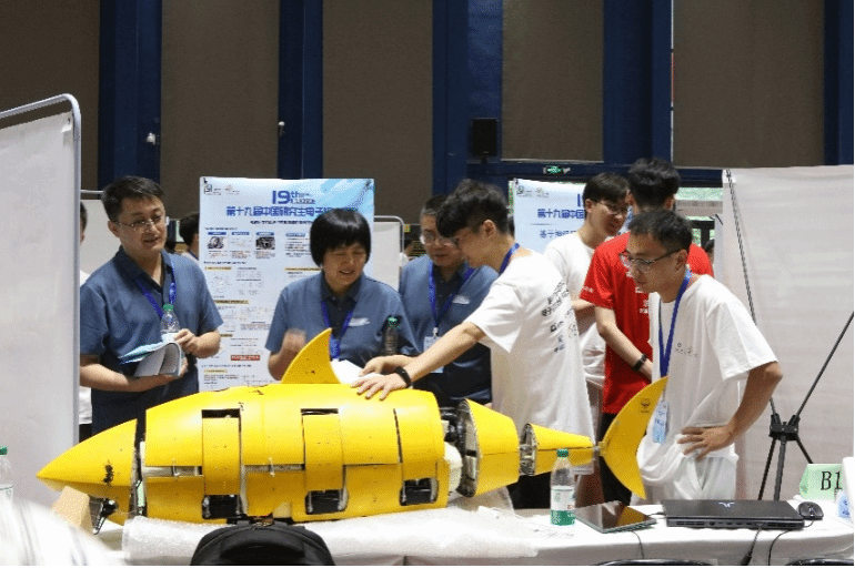 开幕式结束后,评审专家按不同赛道、分组,对参赛作品进行考察。参赛队员结合展示牌与实物对参赛作品作详细介绍,并针对专家的提问,对作品进行现场演示与解答。